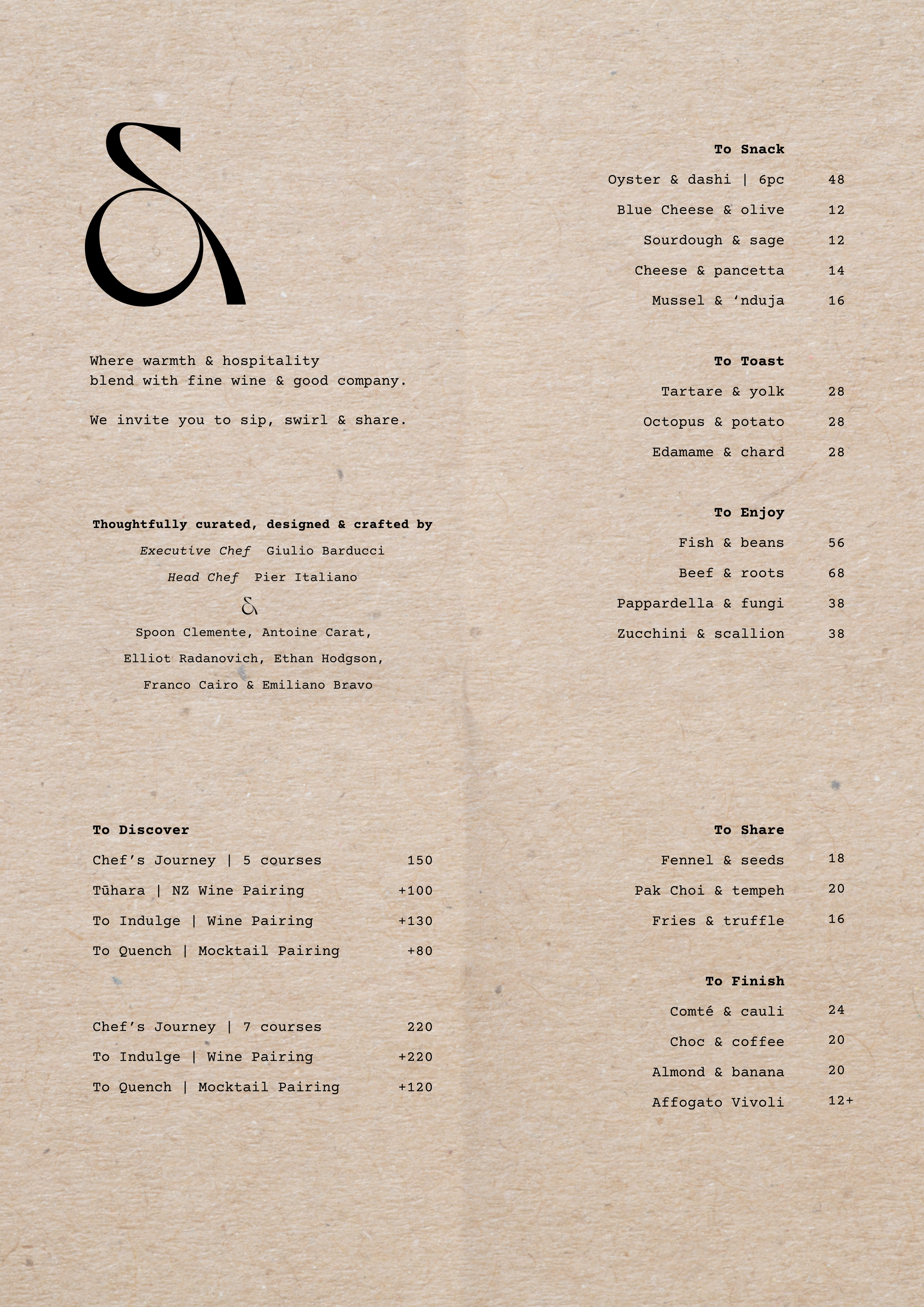 Snacks from 4PM // Dinner from 5PM